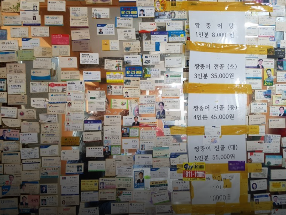 벽에는 메뉴판 대신 손님들이 남긴 수많은 명함이 붙어 있어, 이곳을 찾은 사람들의 추억을 고스란히 느낄 수 있는 특별한 분위기를 자아내죠.