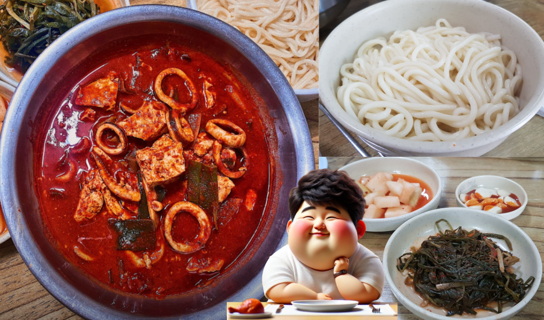 추천 조합 : 두부오징어 두루치기 + 우동사리 → 양념족발 + 마늘초장 → 우동칼국수로 마무리.