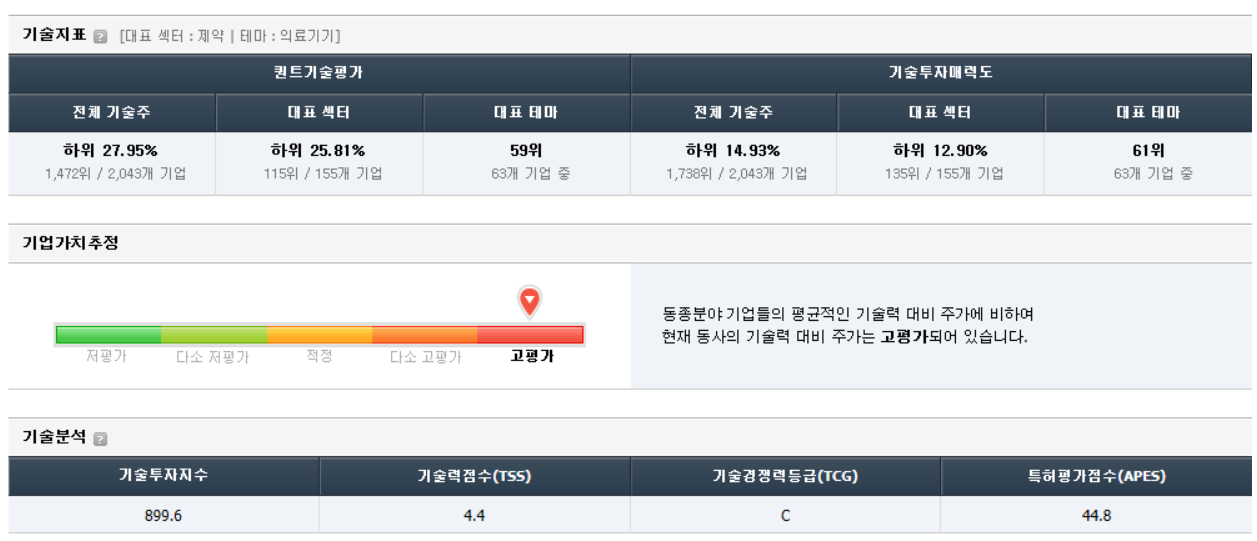 동종분야 기업들의 평균적인 기술력 대비 주가에 비하여 현재 동사의 기술력 대비 주가는 다소 고평가 되어 있습니다. 바이오플러스의 기술지표에 대한 자세한 분석은 다음과 같습니다