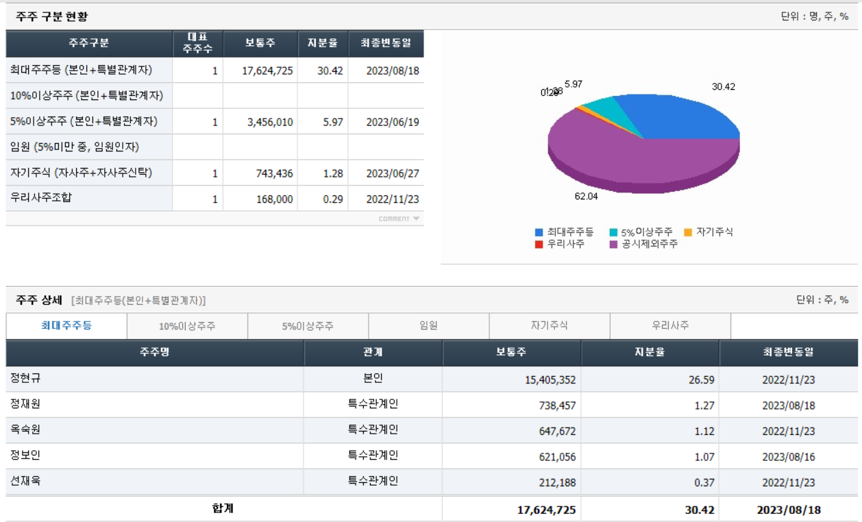 대주주 정보는 단기 투자에는 중요하지 않을 수 있지만, 장기적인 투자를 고려하고 있다면 대주주와 대표의 정보를 알아두는 것이 좋답니다.